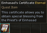 Einhasad's certificate you can buy for TODs or get from Events or Giveaways.