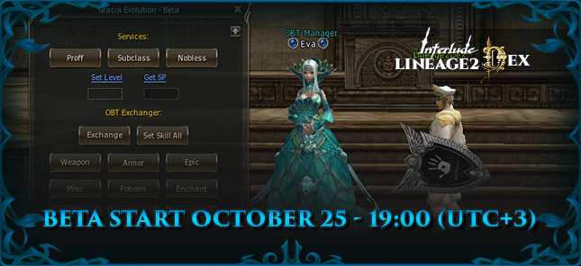 During beta test will be available OBT Manager (NPC Eva) in Giran with all necessary items for test.
