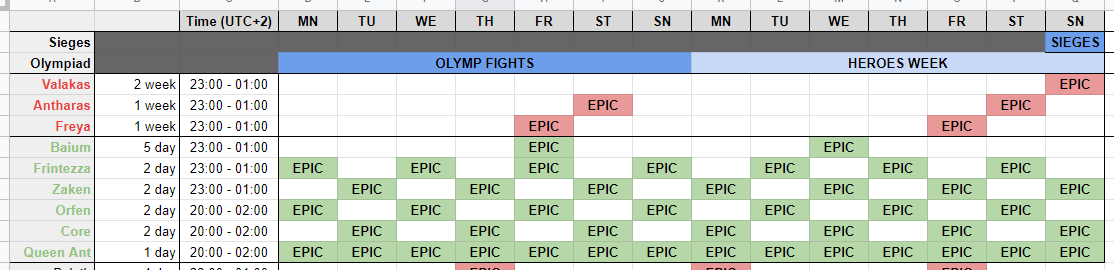 Freya, according to the same logic, will always appear on Friday from 23:00 to 00:00 (UTC + 2).