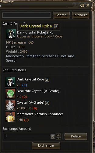 - Added an option to upgrade regular body armor to masterwork body armor. To upgrade a body armor to masterwork you need x100,000 Crystals of corresponding grade, x1 Neolithic Crystal and some Mammon's Varnish Enhancers. (for UNION server price will be higher, you will need x1,000,000 Crystals !).